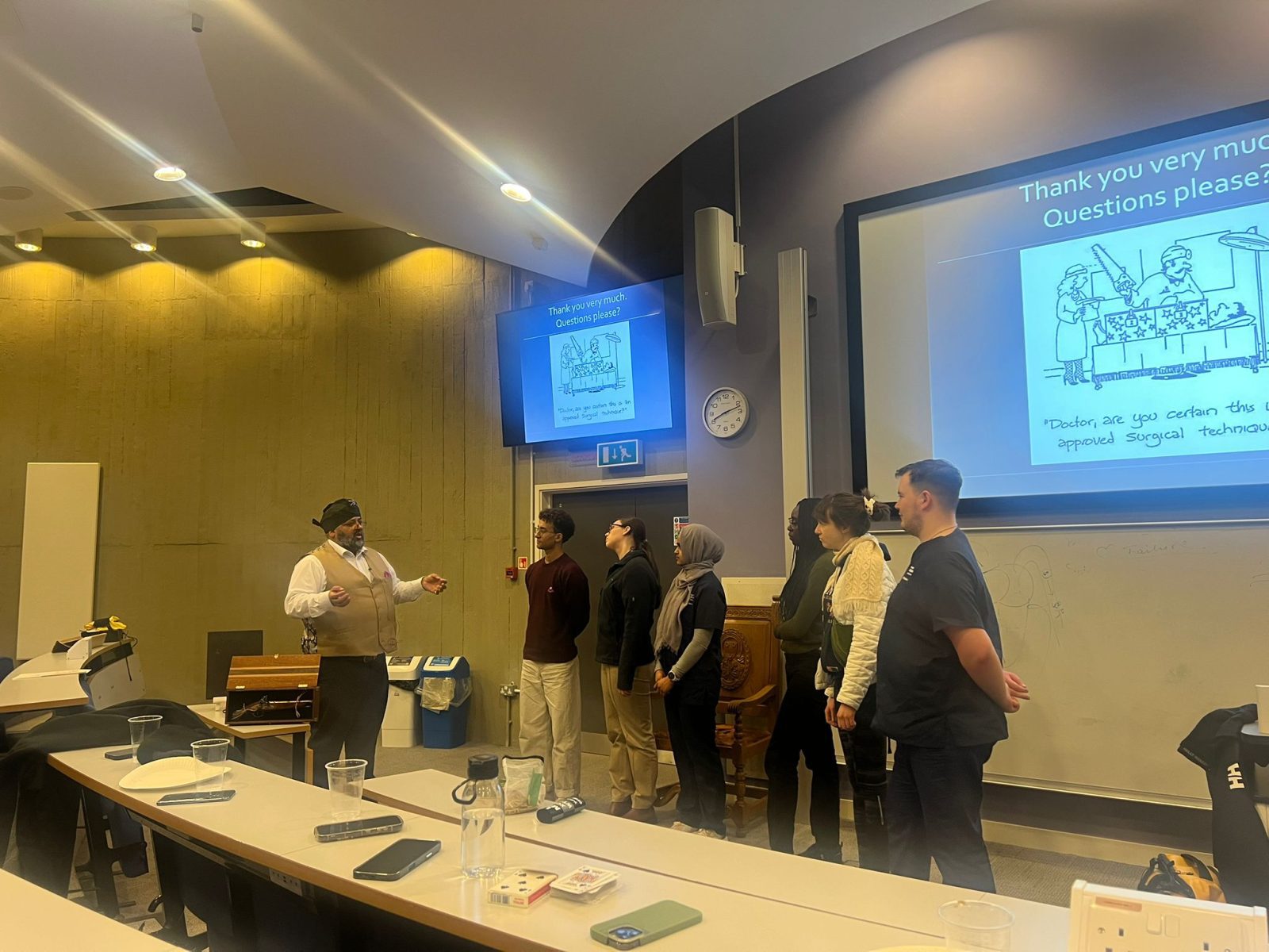 Photos Prof Mahmood Bhutta - 18th March 2026 Surgical illusions by Professor Bindy Sahota - 26th February Cases and Poster Presentation Evening – January 2026 Human Factors & Performance - Lessons from the Aerospace Industry; Dr Sriram Nadathur - 18th November 2025 Open Meeting + RMBF - 6th November 2025 Healthcare and Politics; Mr Mitchell - 22nd October 2025 Presidential Address 2025 Summer Social Event (Morley Hayes 2025) Prof Nicola Cooper Meeting (February 2025) Medical Student Elective Bursary Award 2025 Certificate presentation to Nana Danso-Appiah. A Visit to Clay Mills Pumping Station January 2025 Cases and Poster Presentation evening January 2025 Dr Dave Bareford - A Journey Through Ballooning Prof Peters Meeting Presidents Meal January Poster - 2024 January Poster and Case Presentation Evening (2024) hosted by President, Dr Tanya Bleiker